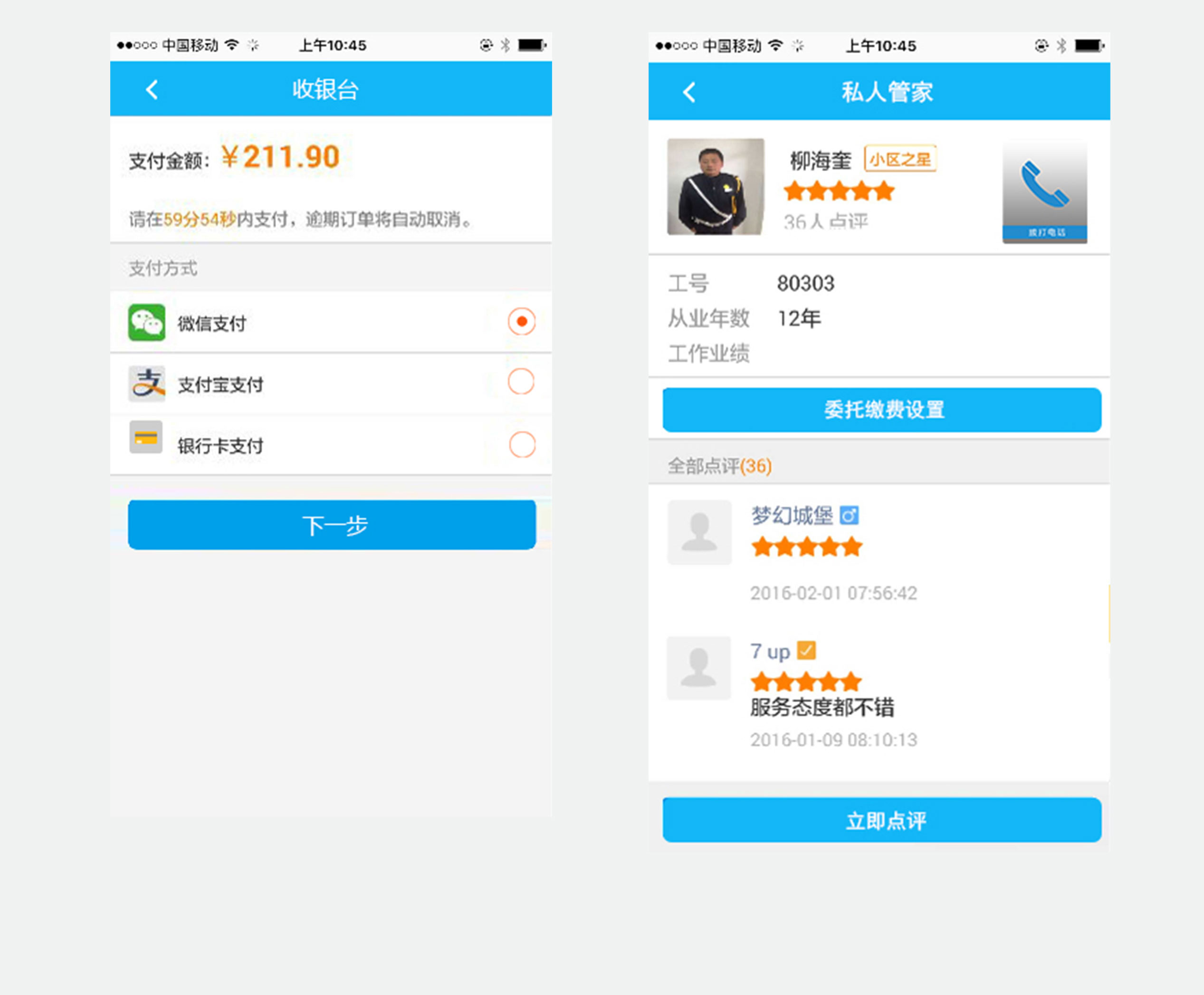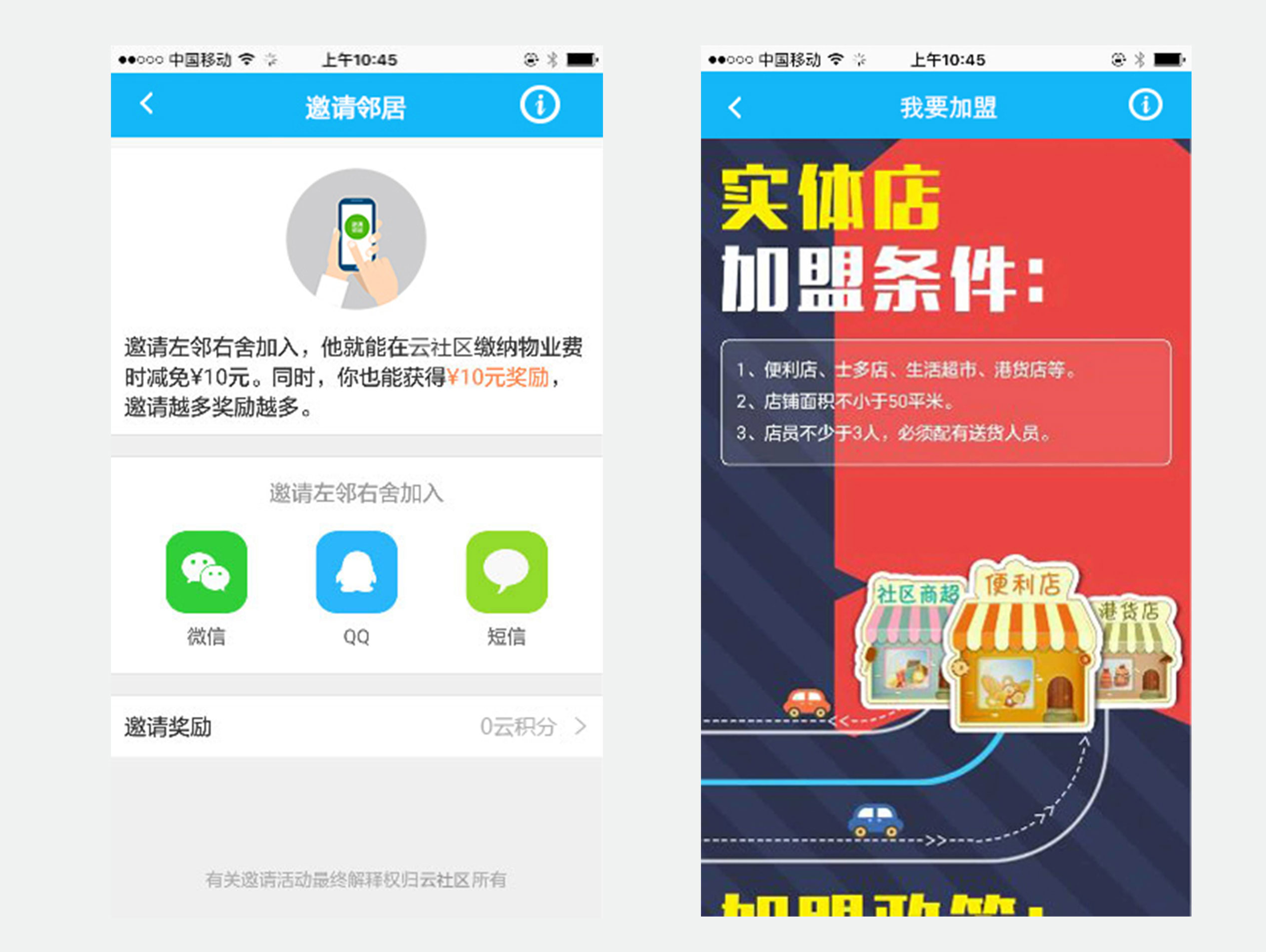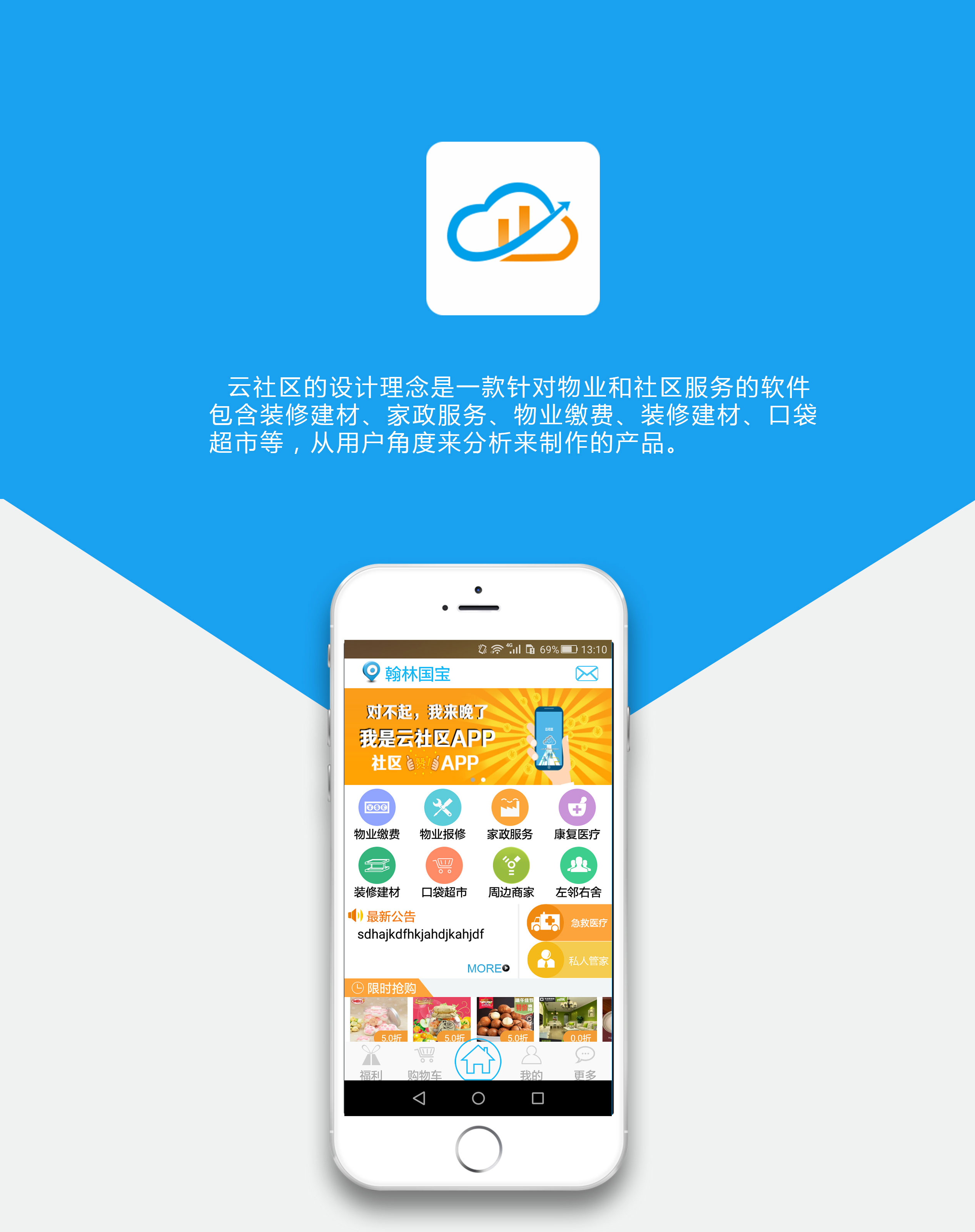 设计理念:云社区是一款针对物业和社区服务的软件,包含装修建材、家政服务、物业缴费、装修建材、口袋 超市等,从用户角度来分析来制作的产品。