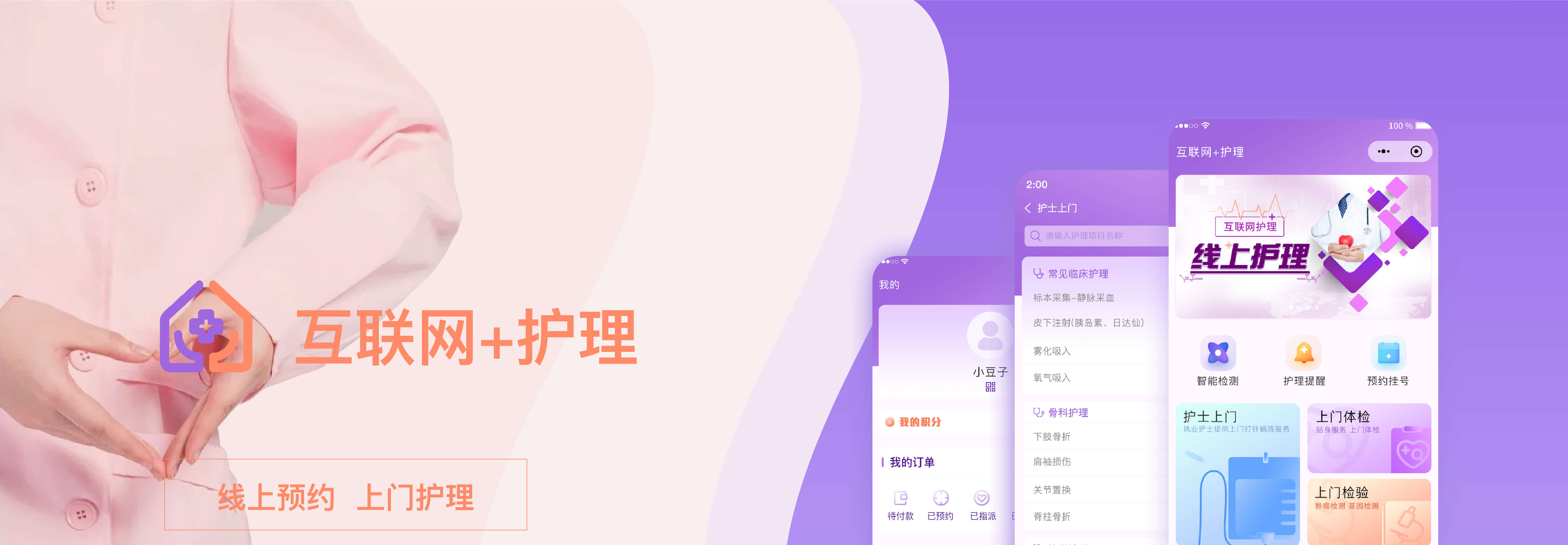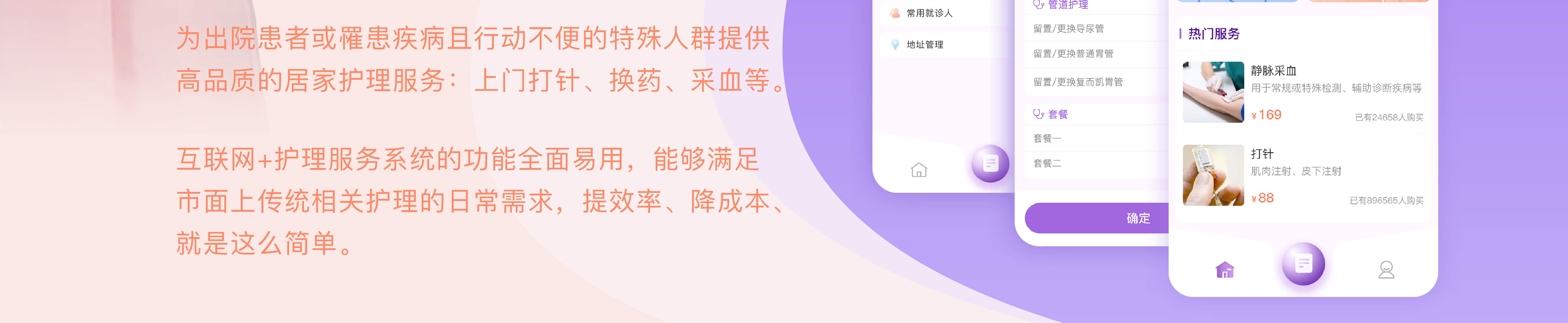 设计理念:为出院患者或罹患疾病且行动不便的特殊人群提供高品质的居家护理服务。