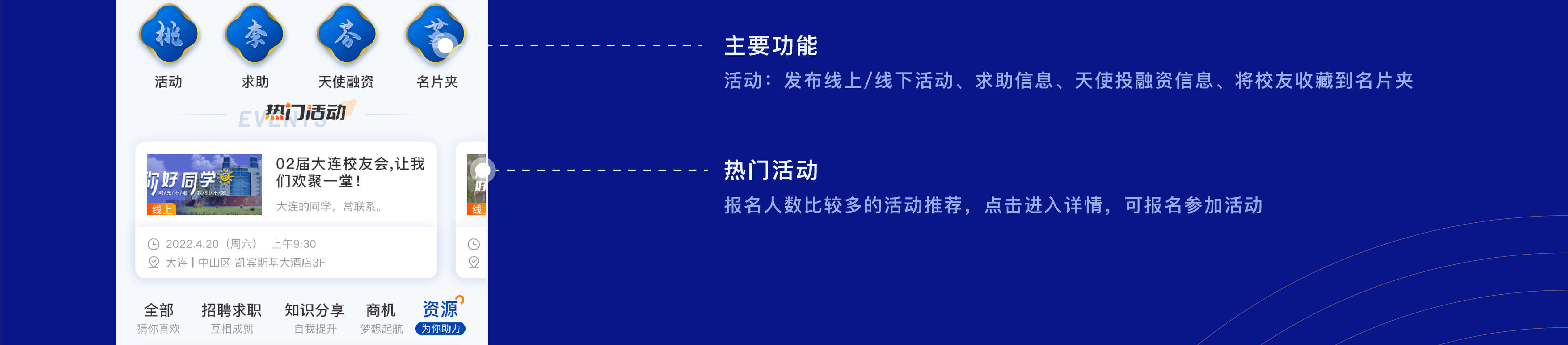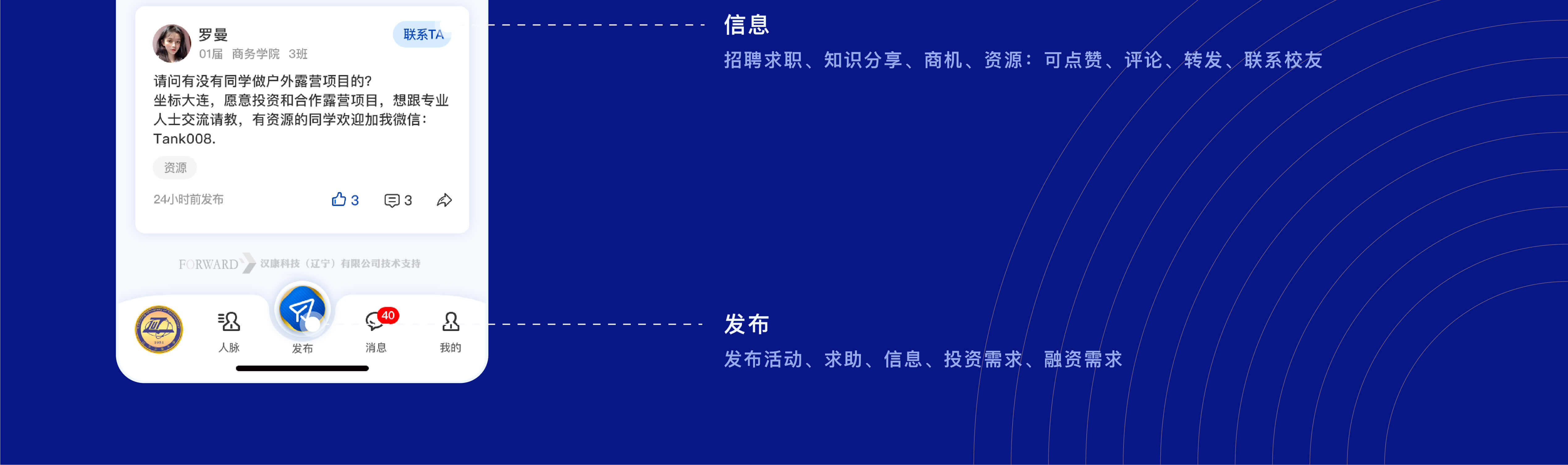 设计理念:人人为我,我为人人。让各地校友紧密相连,互帮互助,弘扬母校文明。