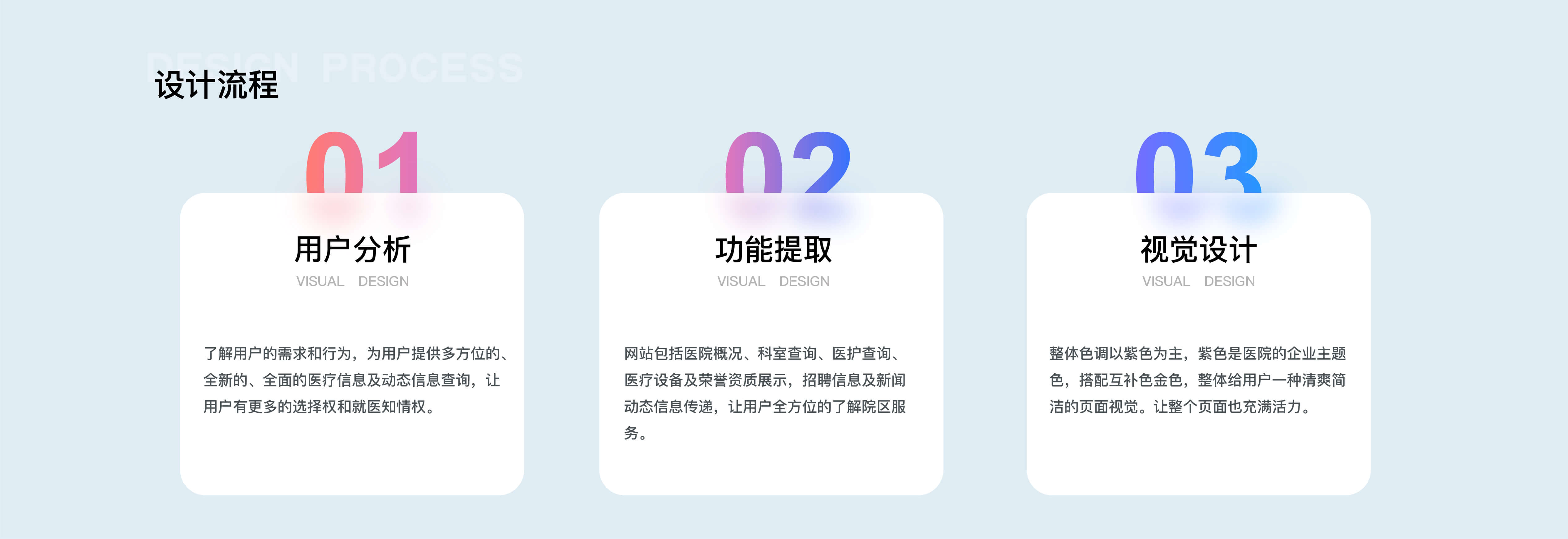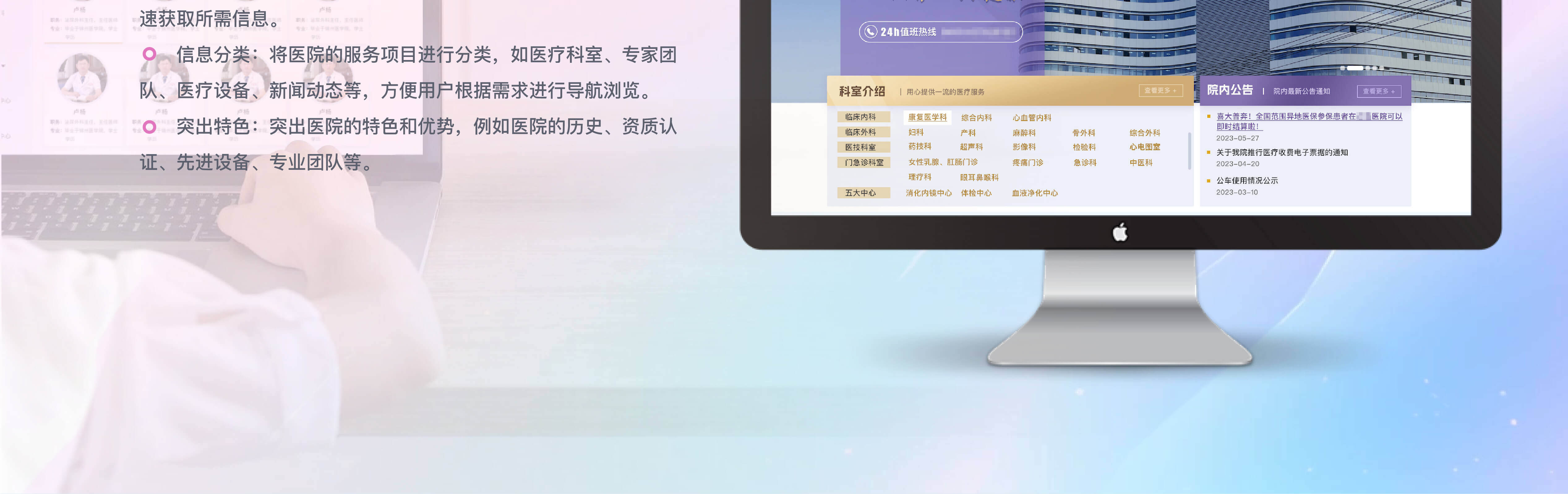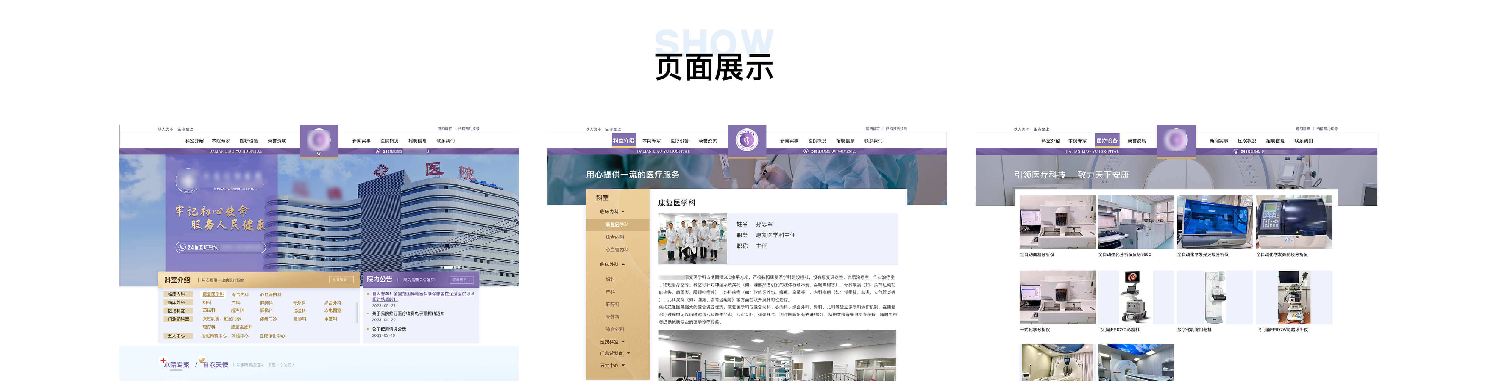 设计理念:展示院区科室、专家及各项医疗服务,方便用户按需导航浏览。