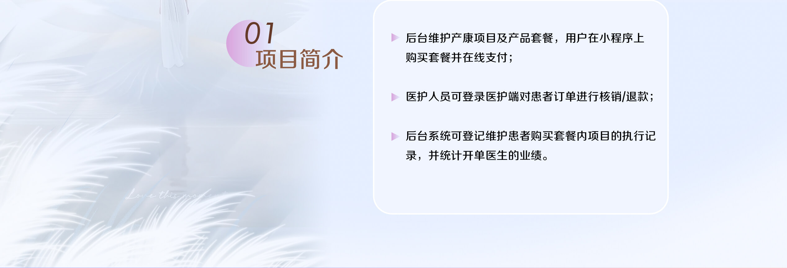 设计理念:线上购买套餐,线上核销、线上记录执行操作。