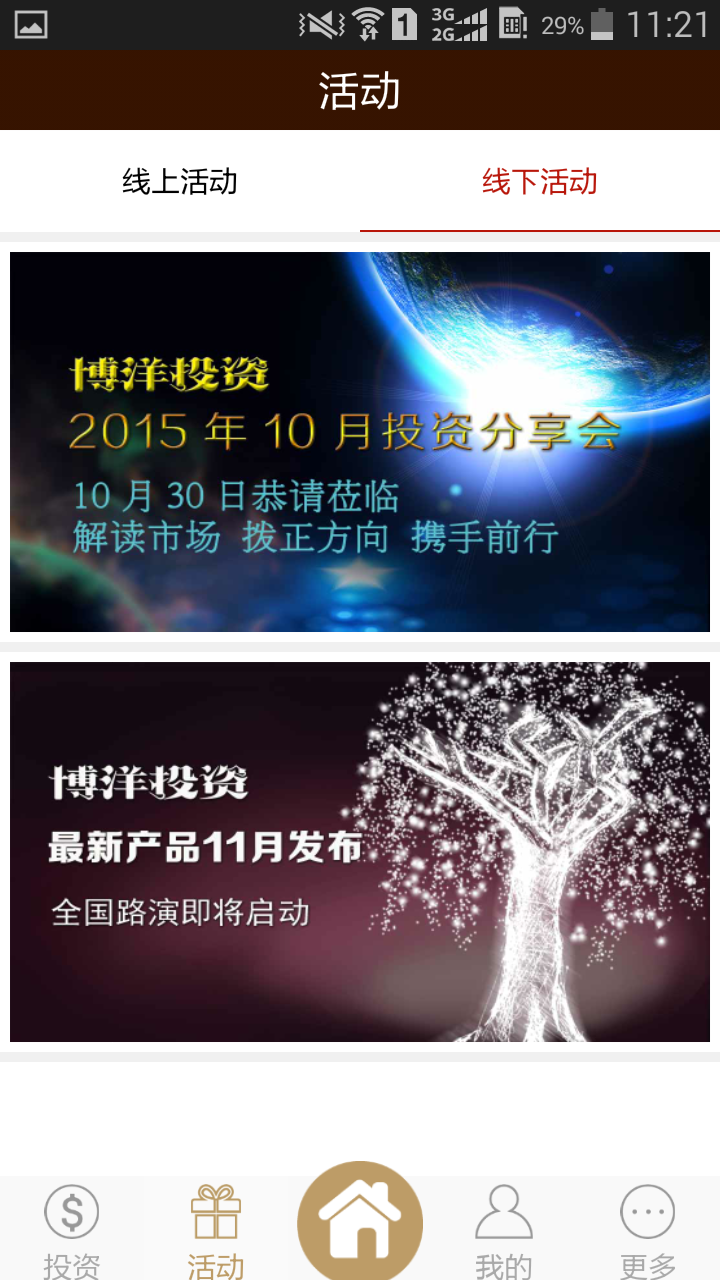 2. 活动:分为线上和线下活动,点击图片进入活动详情页