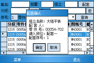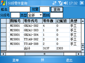 结果:通过以上两部的操作就将配套零件的纤细信息以及对该零件的配套处理详细的记录到了PDA中.