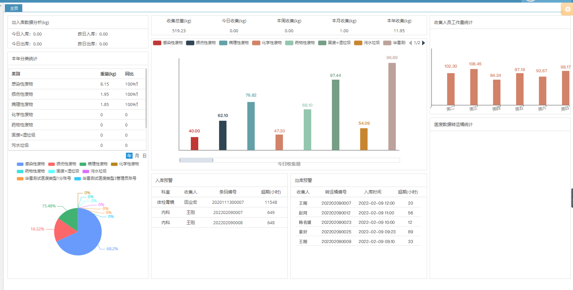 系统具有强大的报表分析功能,除对医废的核心数据进行动态统计和追溯查询外,还支持对医废的出入库数据分析、参与人员的工作量、医废类别对比、医废数据转运桶统计等进行多样化的统计分析和组合查询。