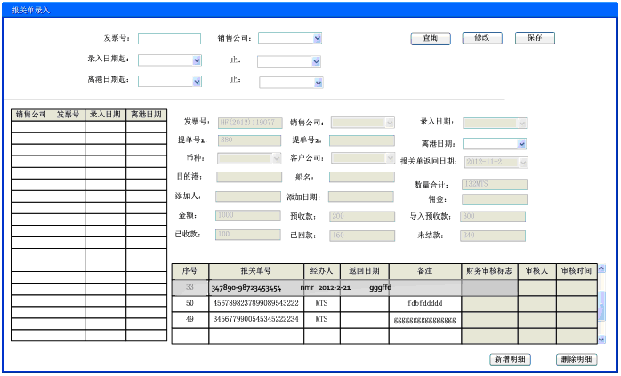 12、对于未审核的资料,离港日期修改后,存储到发票资料档中。同时,对于发票的离港日期,建立一个修改记录档,可以报表查询。