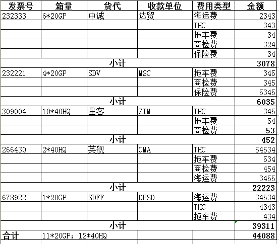 12、发票费用明细