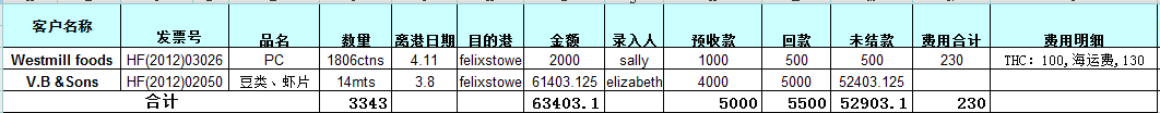 13、客户业务款项汇总