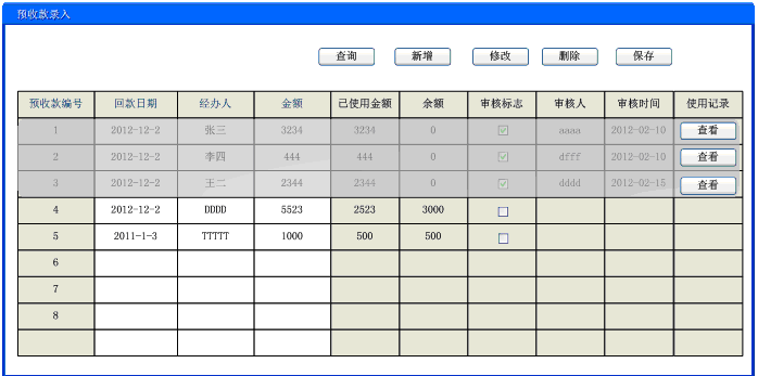 3、预收款录入